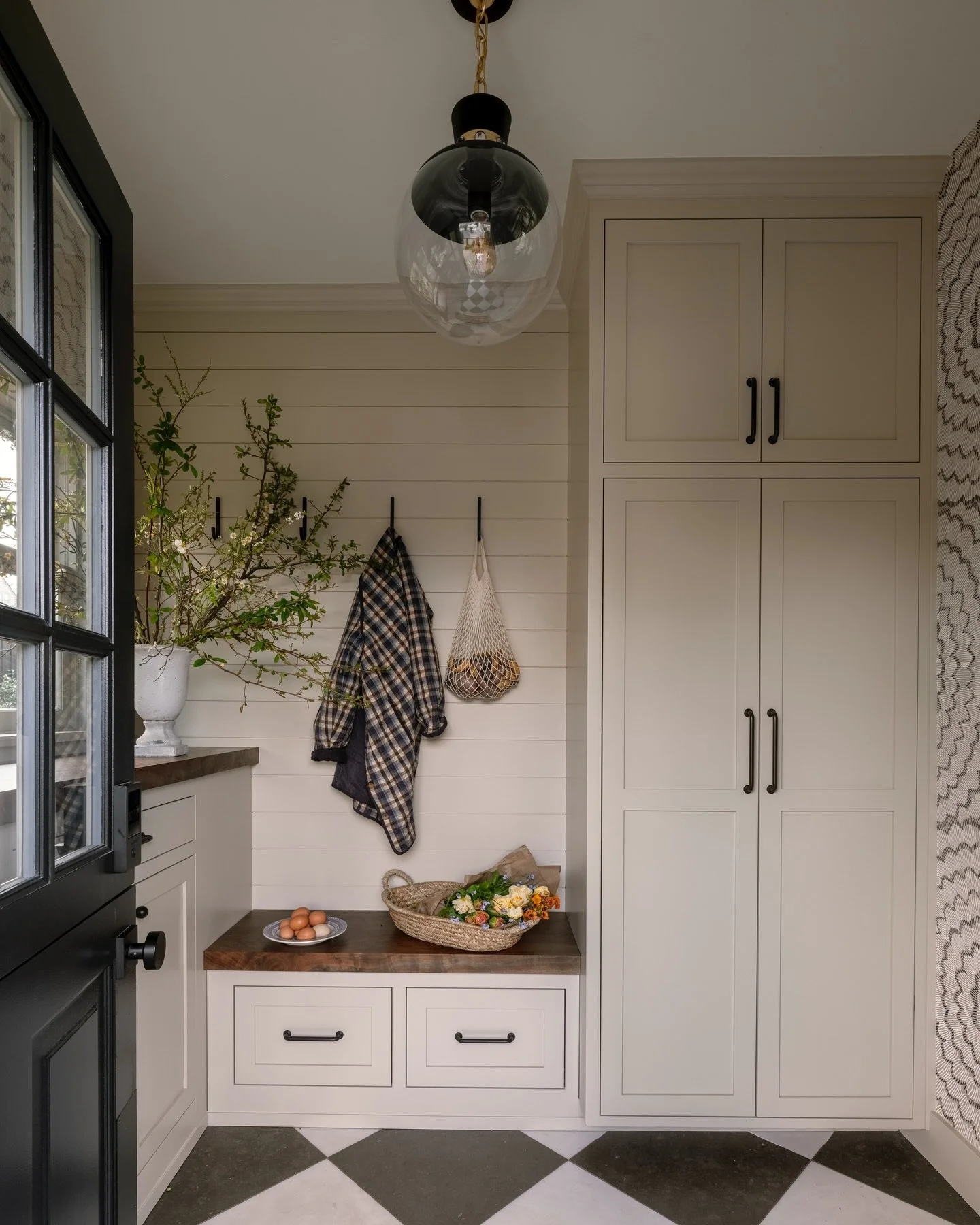 Our team instantly fell in love with the original details of this Madrona Park home, from the tulip cut-outs in the woodwork to the beamed ceilings and granite fireplace. Our vision was to honor and preserve these historic elements while introducing thoughtful updates to the kitchen, butler’s pantry, living room, primary bathroom, and powder room.